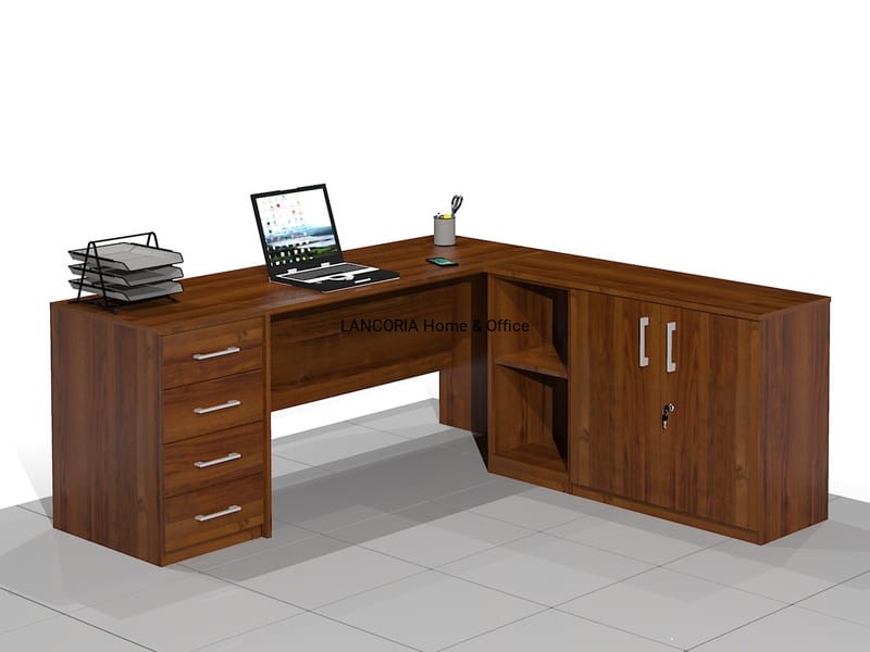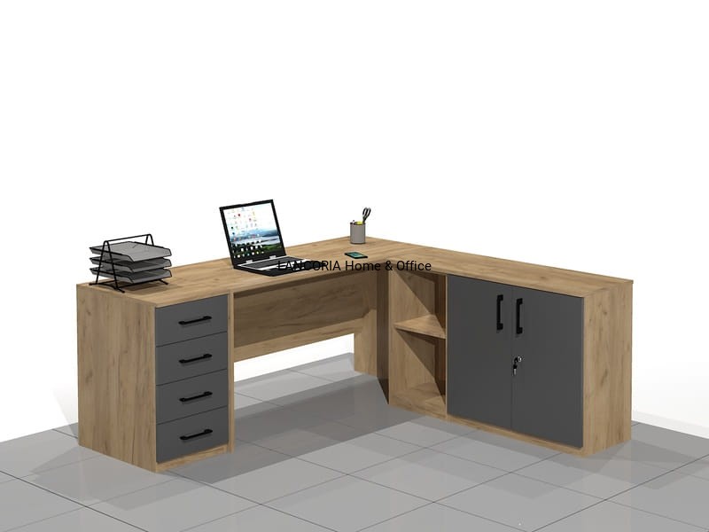 Zestaw czterech elementów tworzących biurko narożne. Eleganckie biurka o solidnej i mocnej konstrukcji. Wersja prawa lub lewa.