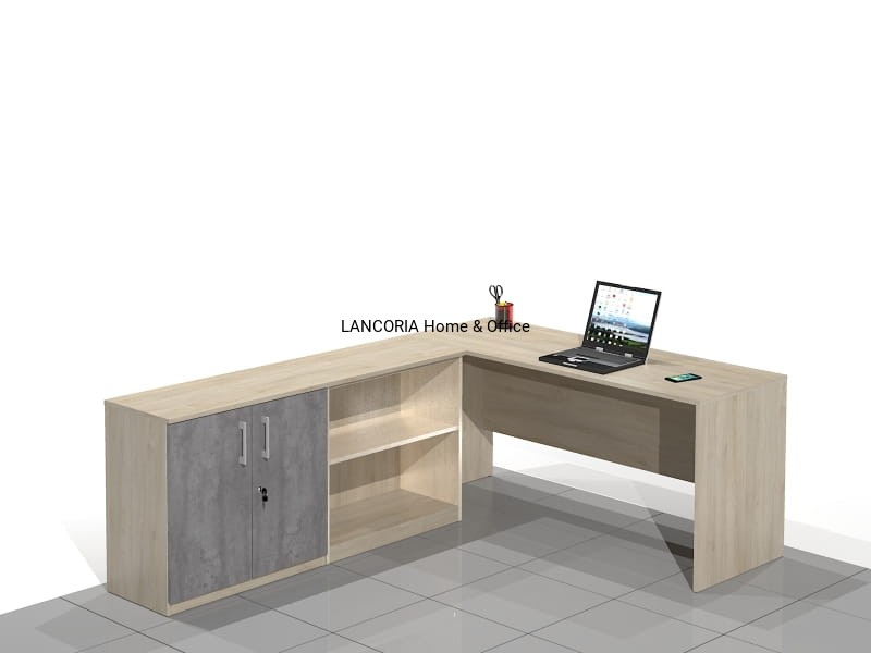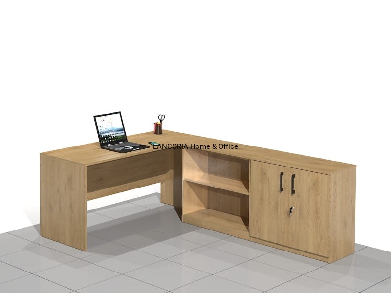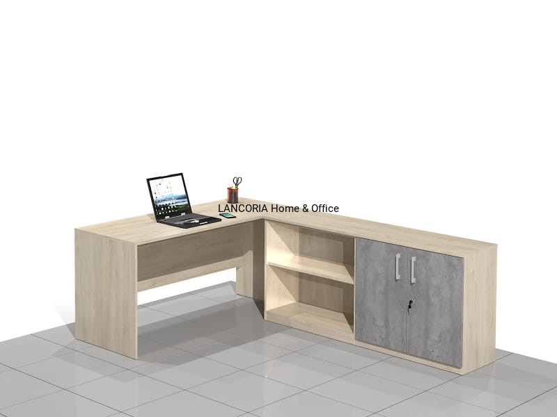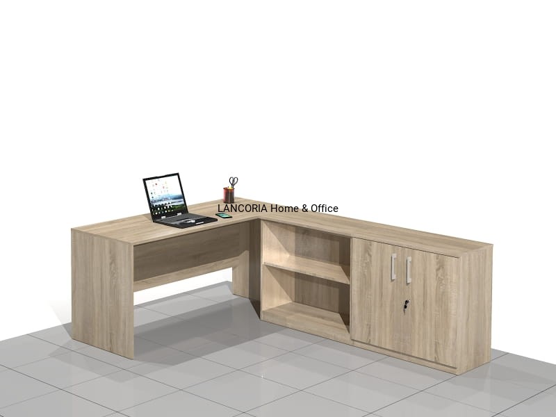Zestaw trzech elementów tworzących biurko narożne. Eleganckie biurka o solidnej i mocnej konstrukcji. Wersja prawa lub lewa.