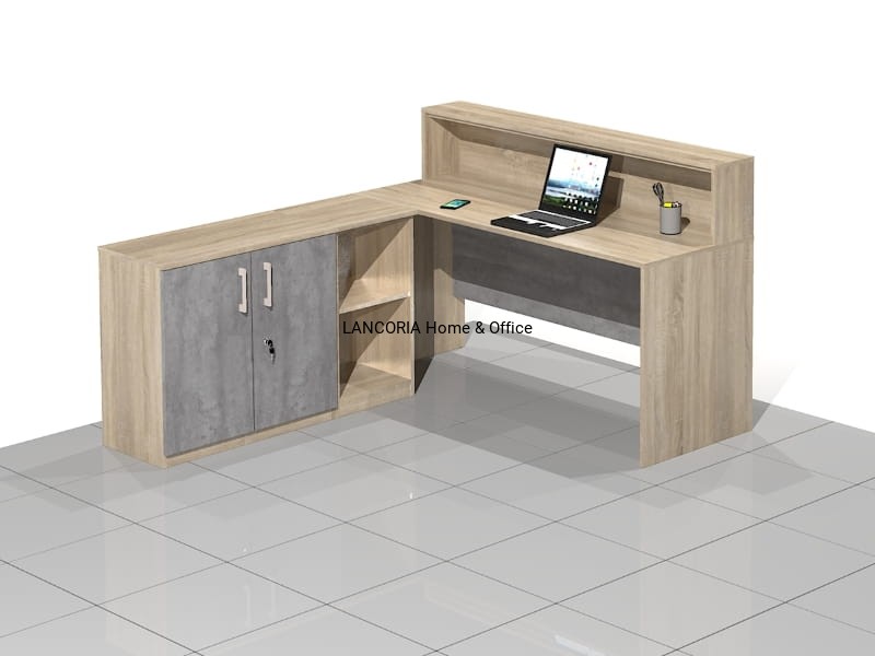 Zestaw trzech elementów tworzących biurko narożne z nadstawką. Eleganckie biurka o solidnej i mocnej konstrukcji. Wersja prawa lub lewa.