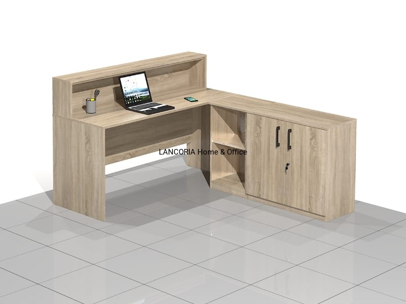 Zestaw trzech elementów tworzących biurko narożne z nadstawką. Eleganckie biurka o solidnej i mocnej konstrukcji. Wersja prawa lub lewa.
