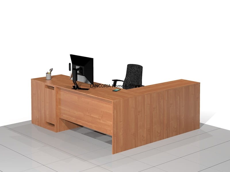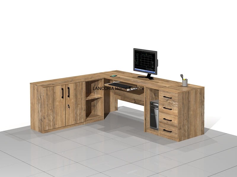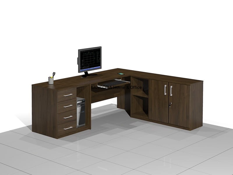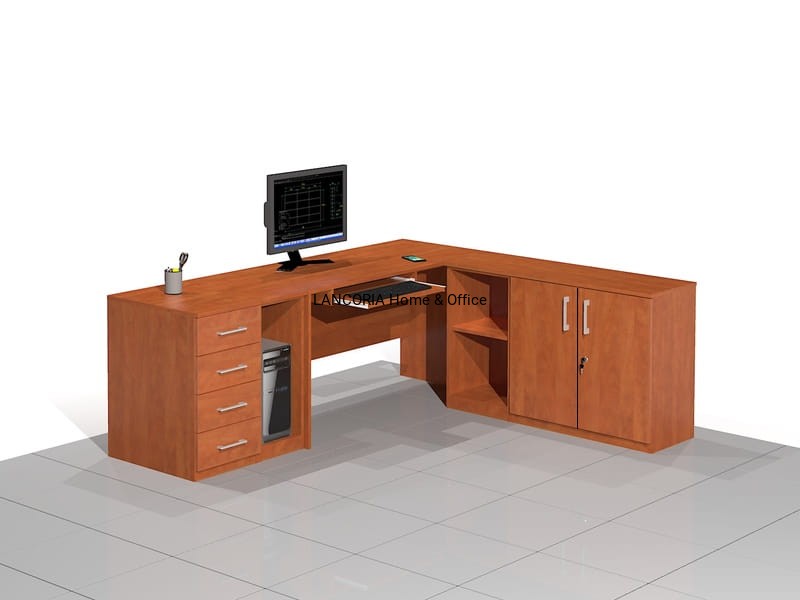 Zestaw pięciu elementów tworzących biurko narożne. Eleganckie biurka o solidnej i mocnej konstrukcji. Wersja prawa lub lewa.