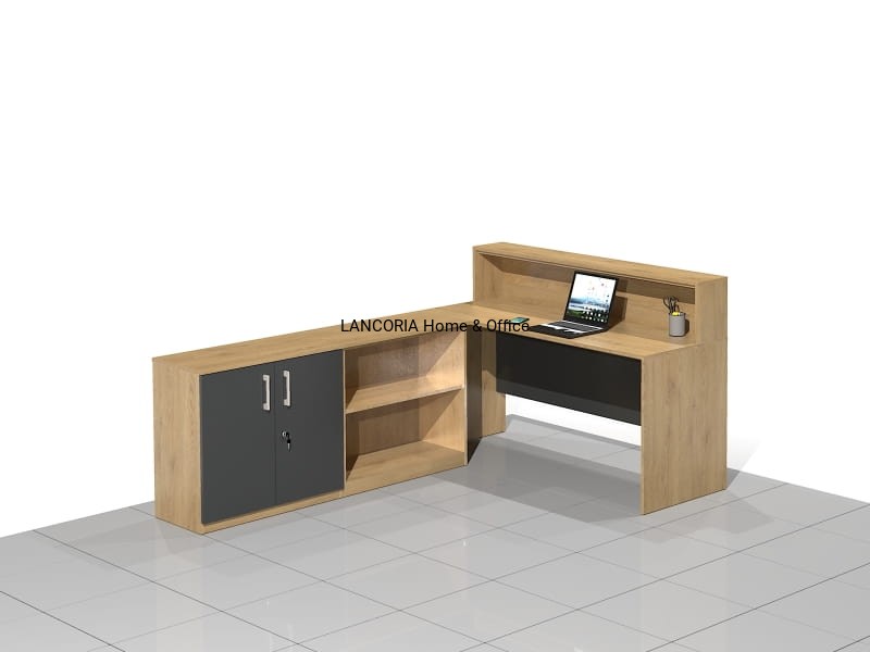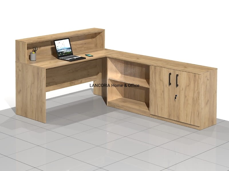 Zestaw czterech elementów tworzących biurko narożne z nadstawką. Eleganckie biurka o solidnej i mocnej konstrukcji. Wersja prawa lub lewa.