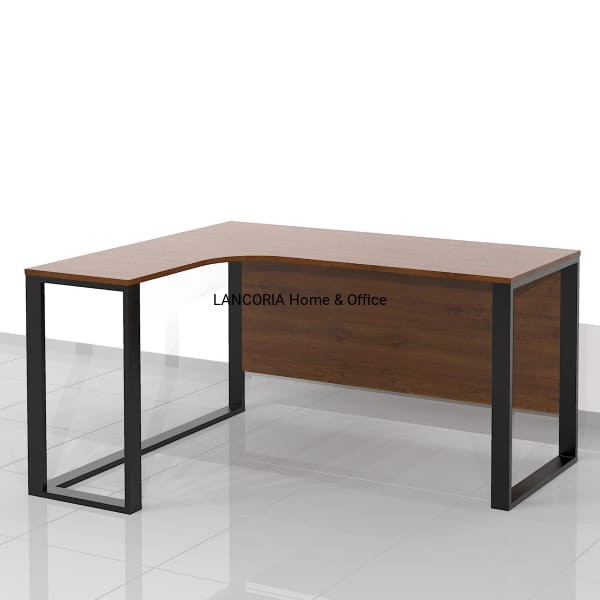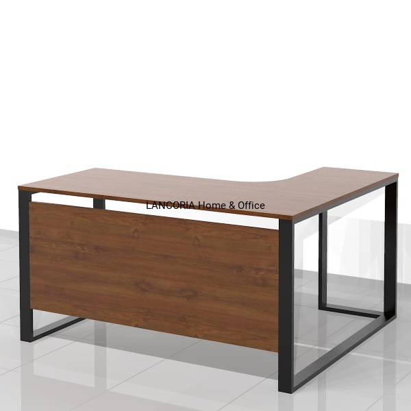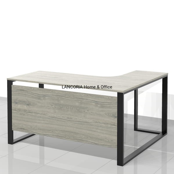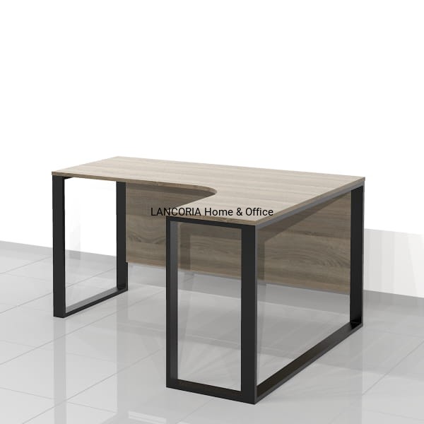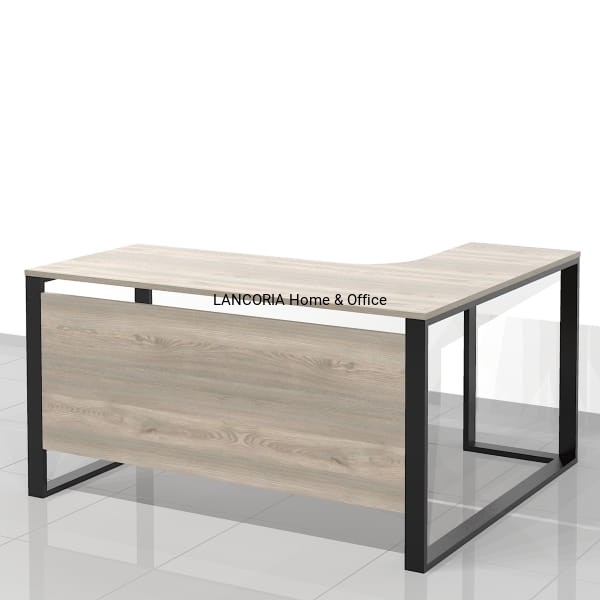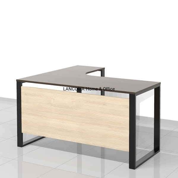Biurko narożne MF-UMA-NRB to bardzo solidna i wytrzymała konstrukcja. Jednolity narożny blat spoczywa na metalowym stelażu. Z przodu blenda płytowa. Stelaż metalowy w kolorze czarnym lub srebrno-popielatym. Wersja prawa lub lewa biurka.