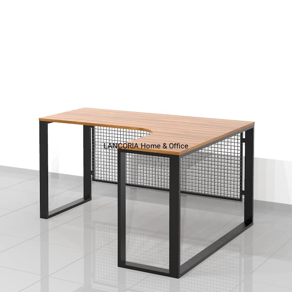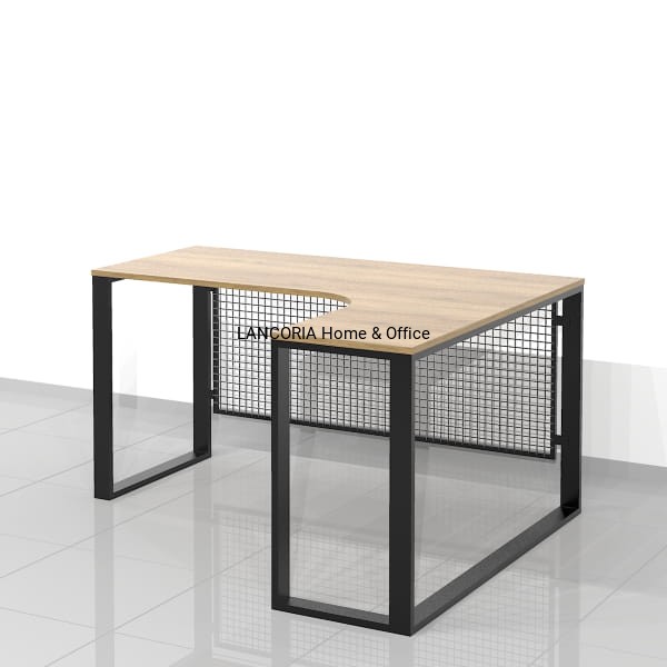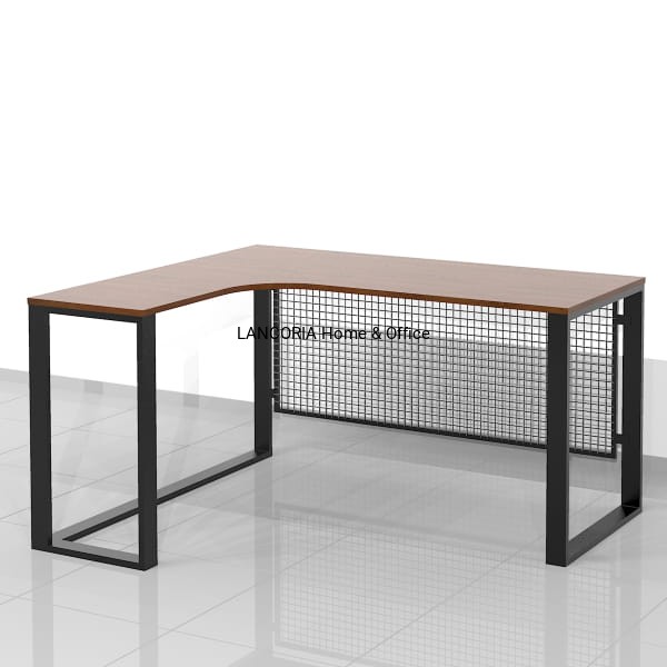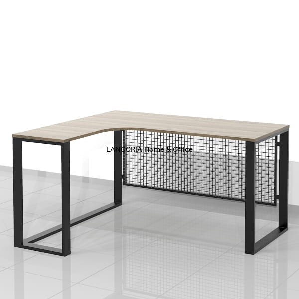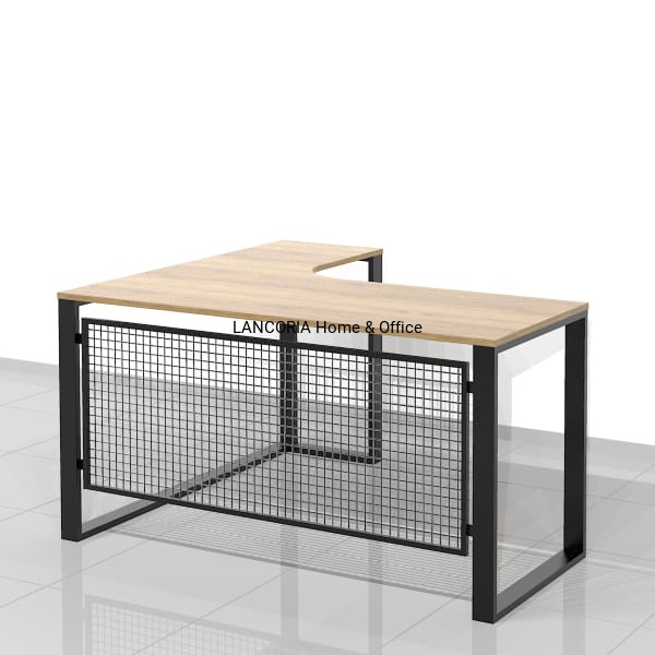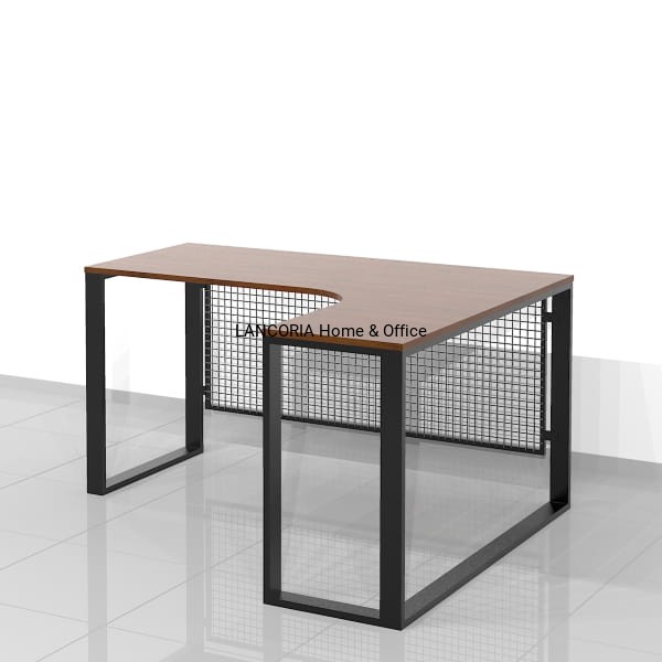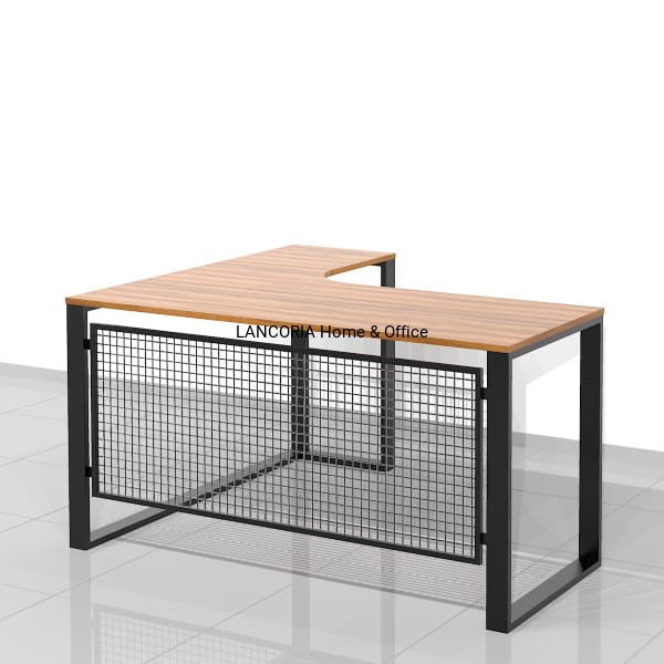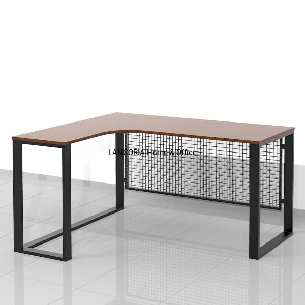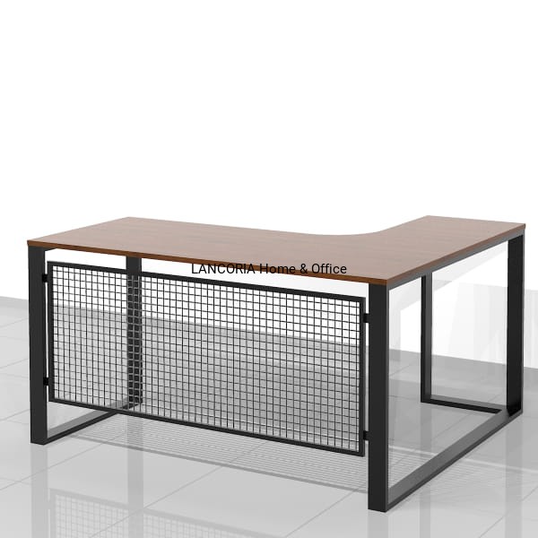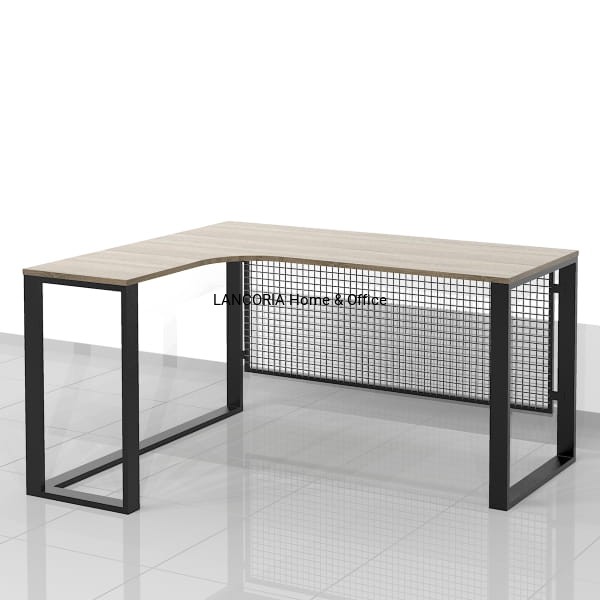 Biurko narożne MF-UMA-NRC to bardzo solidna i wytrzymała konstrukcja. Jednolity narożny blat spoczywa na metalowym stelażu. Stelaż metalowy w kolorze czarnym lub srebrno-popielatym. Z przodu ozdobna osłona z siatką metalową. Wersja prawa lub lewa biurka.