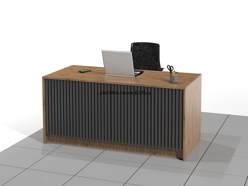 Z przodu biurka znajduje się blenda ozdobna z pionowymi lamelami. Tło lameli może być pod kolor lub kontrastujące.