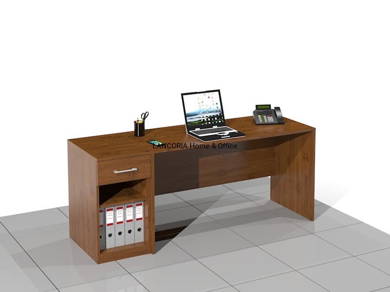 To funkcjonalne biurko z szufladą idealnie sprawdzi się w domowym gabinecie lub nowoczesnym biurze. Dostawka z szufladą i wnęką zapewnia wygodne miejsce do przechowywania dokumentów i akcesoriów biurowych, a solidna konstrukcja gwarantuje długotrwałe użytkowanie. Biurko z miejscem do przechowywania ELAM-MF-PC to inwestycja w komfort i ergonomię pracy.