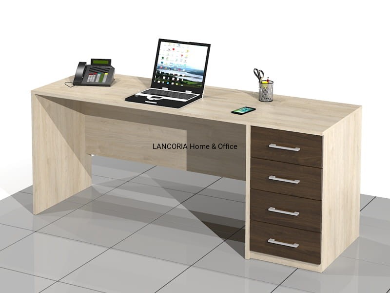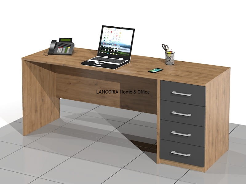 To funkcjonalne biurko z czterema szufladami idealnie sprawdzi się w domowym gabinecie lub nowoczesnym biurze. Pojemna dostawka zapewnia wygodne miejsce do przechowywania dokumentów i akcesoriów biurowych, a solidna konstrukcja gwarantuje długotrwałe użytkowanie. Biurko z miejscem do przechowywania ELAM-MF-PS to inwestycja w komfort i ergonomię pracy. Do szuflad możesz zamówić zamek centralny.