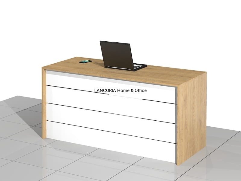 - Unikalny design: Szerokie, poziome listwy na froncie biurka (blenda) dodają elegancji, nadając meblowi lekkości i oryginalnego charakteru. Wąskie szczeliny pomiędzy listwami dodają biurku subtelności i stylu.