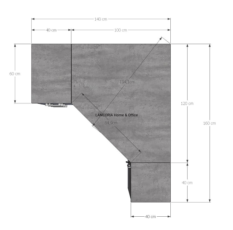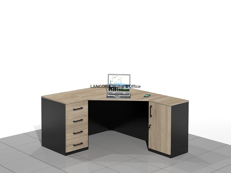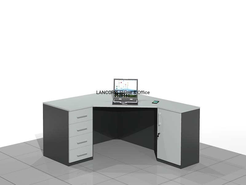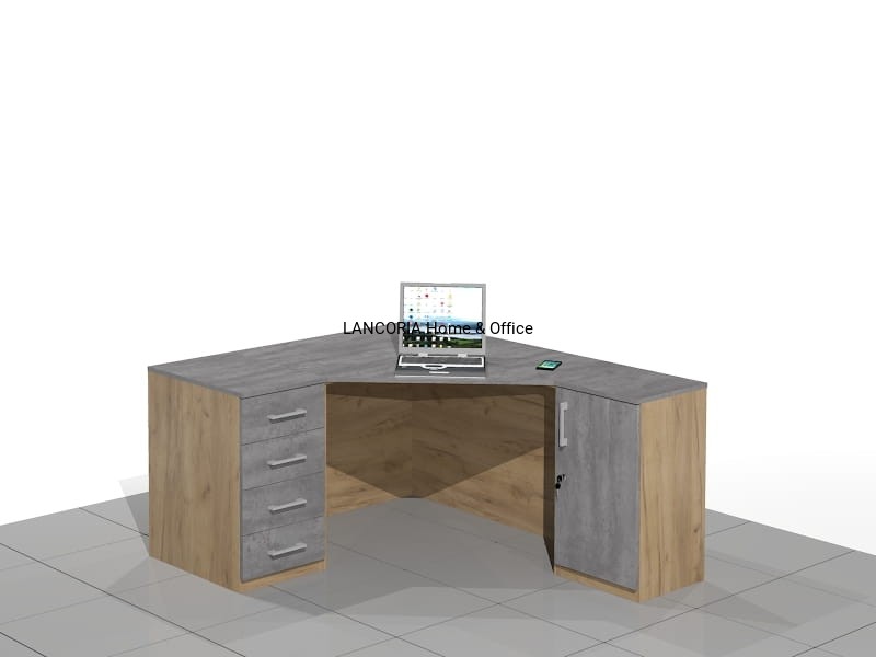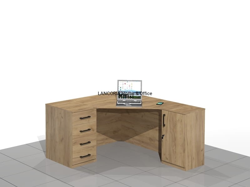 Nowoczesne duże biurko narożne składające się z osobnych modułów. Trzy osobne blaty. Wersja prawa lub lewa.