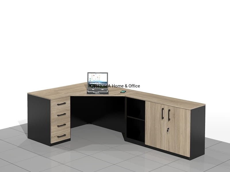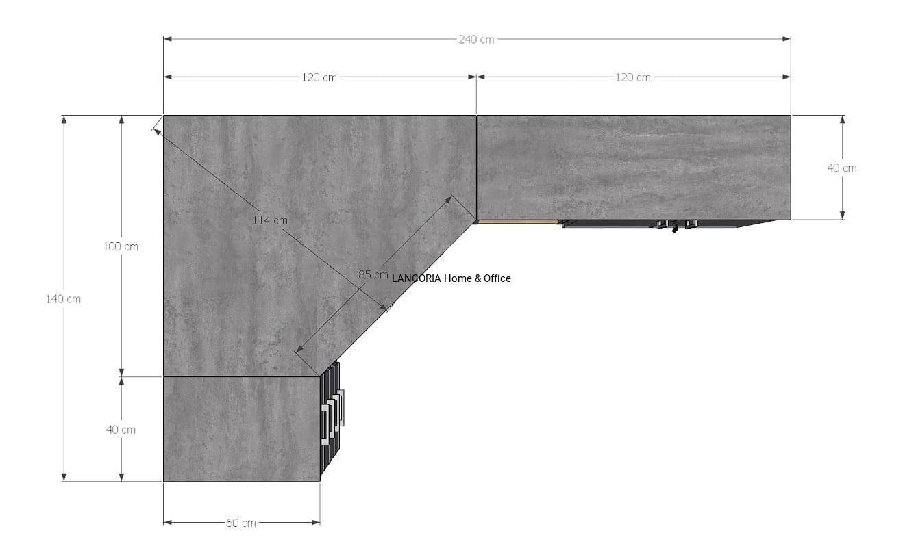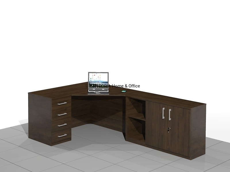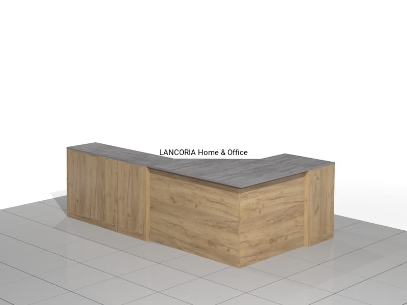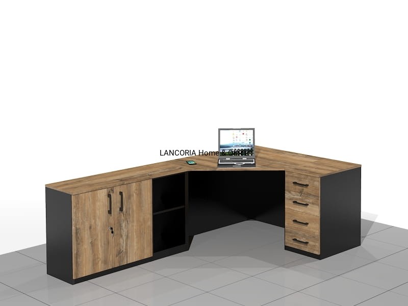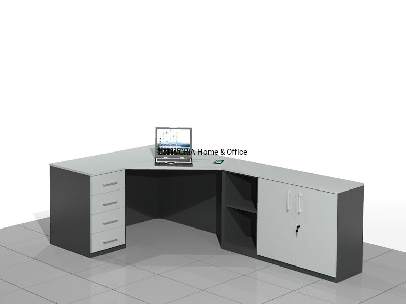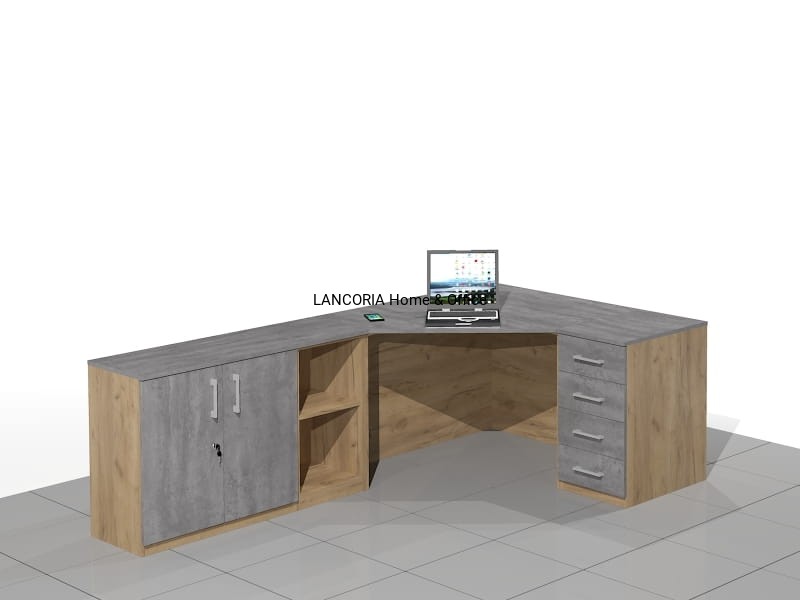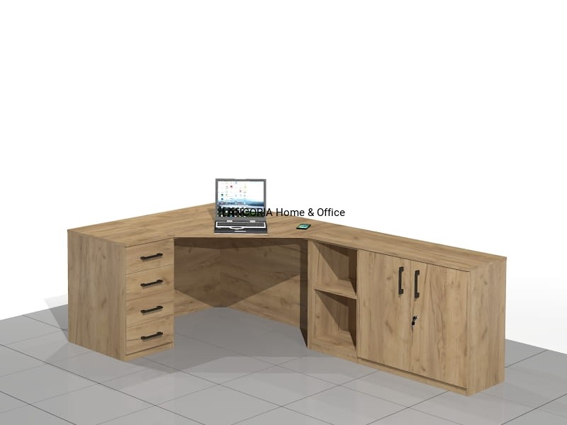 Nowoczesne duże biurko narożne składające się z osobnych modułów. Trzy osobne blaty. Wersja prawa lub lewa.