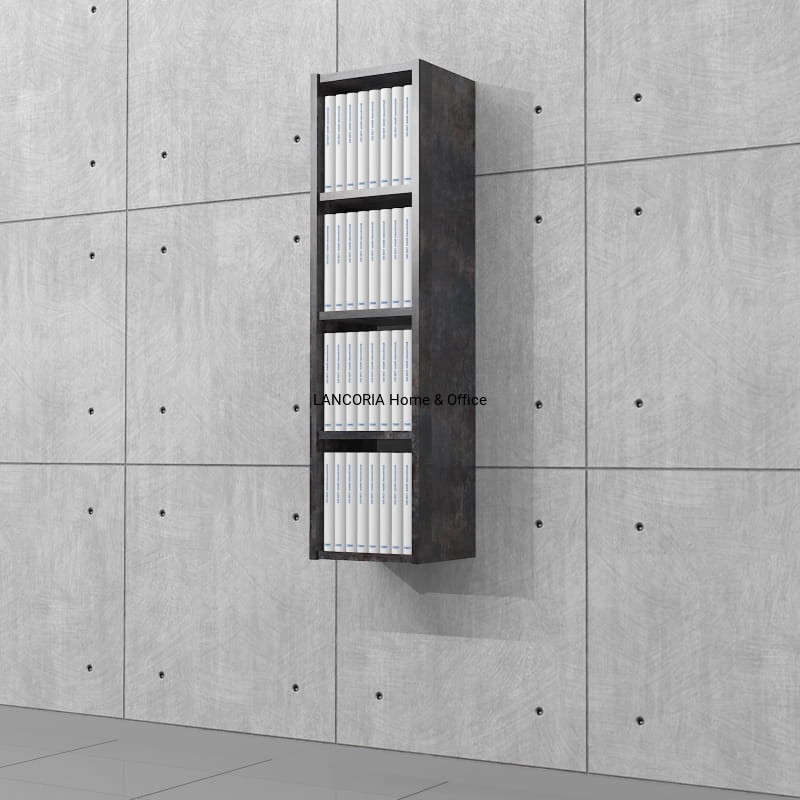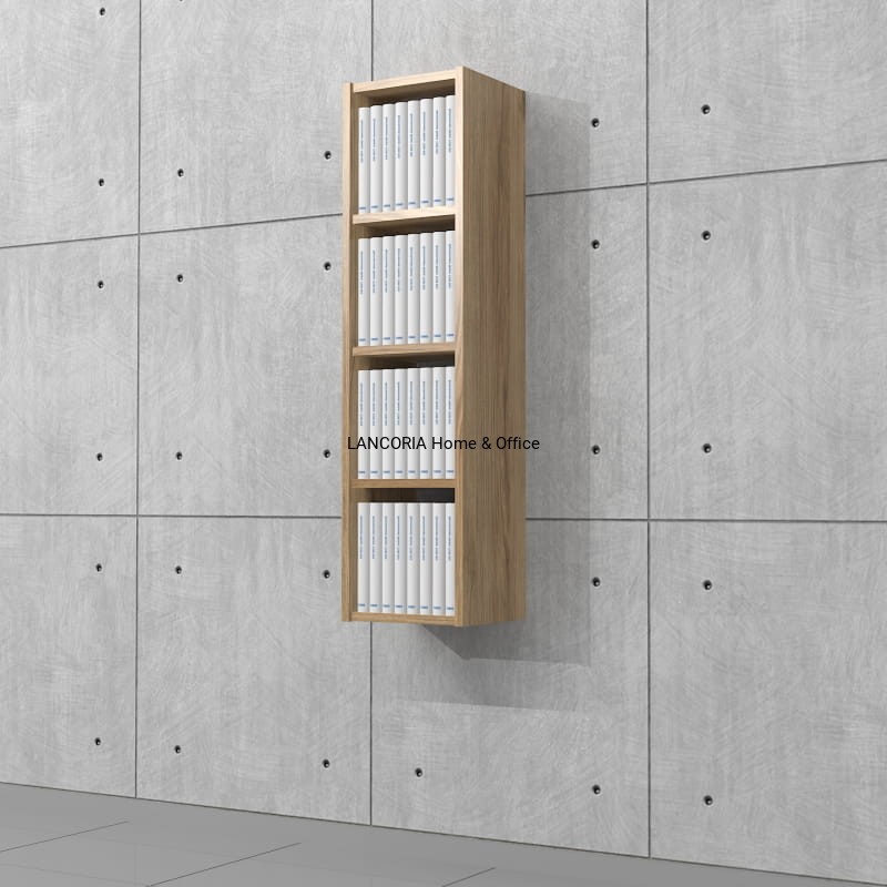 Elegancka półka wisząca o solidnej i mocnej konstrukcji. Cztery poziomy na książki. Dostarczana w całości zmontowana.