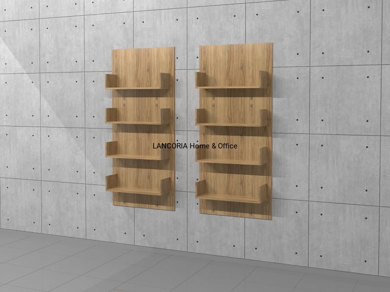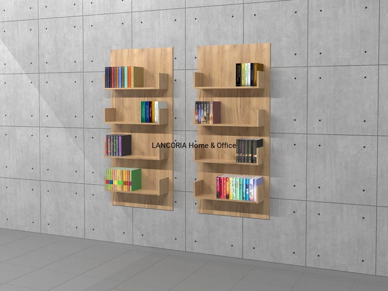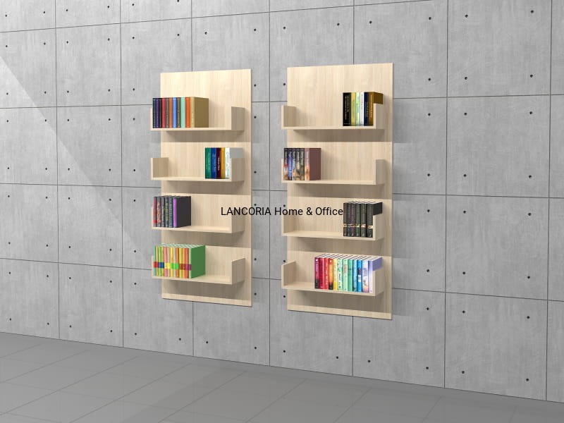 Zestaw 2 regałów wiszących na książki PWDR-D2. Cztery poziomy na książki. Dostarczana w całości zmontowana.