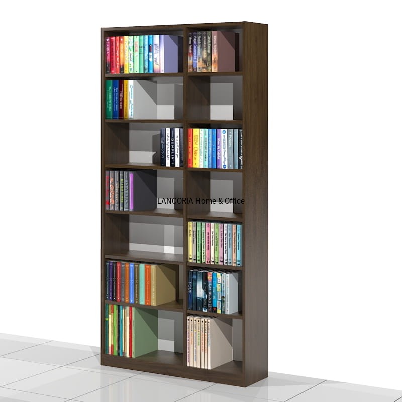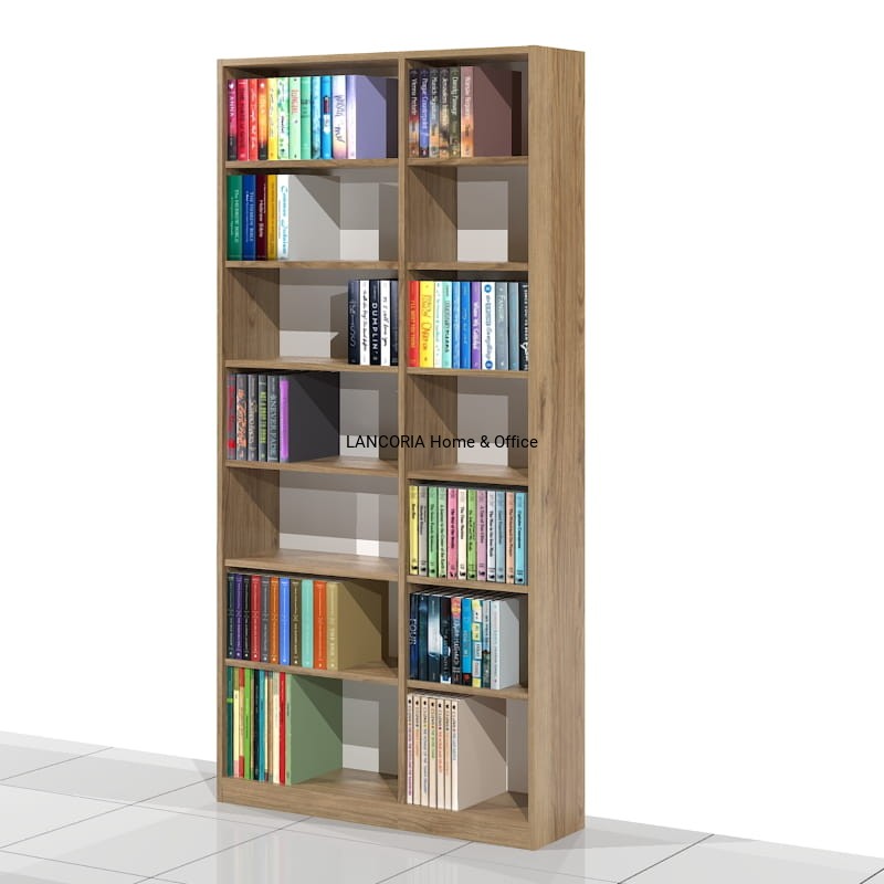 Elegancki regał książkowy o solidnej i mocnej konstrukcji. Siedem poziomów na książki. Dostarczany w całości zmontowany.
