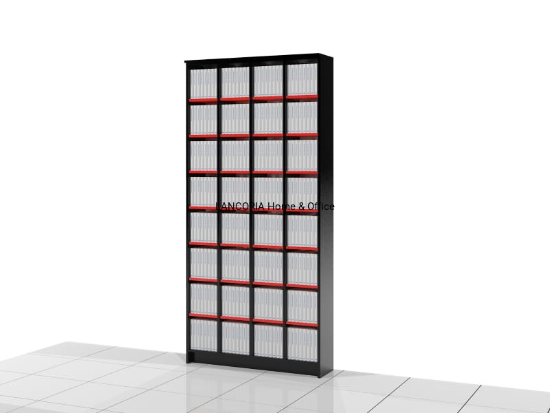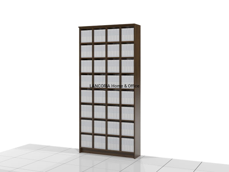 Elegancki regał na książki o solidnej i mocnej konstrukcji. Osiem poziomów na książki. Każda wnęka ma wymiar 25 x 25 cm.