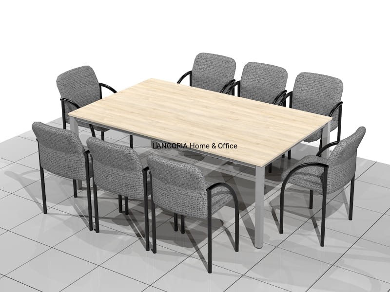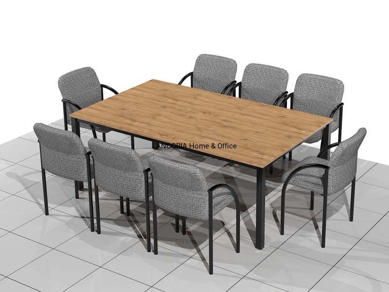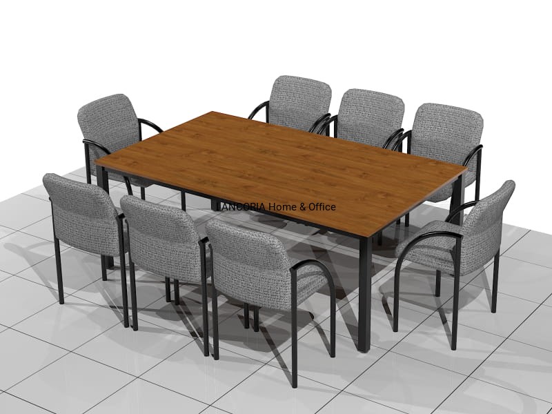Elegancki stół o solidnej i mocnej konstrukcji. Przeznaczony dla 8 osób. Stoły konferencyjne MAT-RK posiadają blat z płyty laminowanej osadzony na solidnej metalowej ramie z kwadratowymi nogami 50 x 50 mm. Grubość blatu wynosi 18 mm. Za dopłatą blaty można pogrubić do 36 mm.