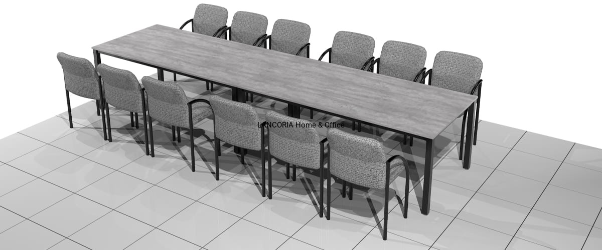 Zestaw dwóch stołów konferencyjnych o solidnej i mocnej konstrukcji. Przeznaczony dla 12 osób. Stoły konferencyjne MAT-ZK posiadają blat z płyty laminowanej osadzony na solidnej metalowej ramie z kwadratowymi nogami 50 x 50 mm. Grubość blatu wynosi 18 mm. Za dopłatą blaty można pogrubić do 36 mm.