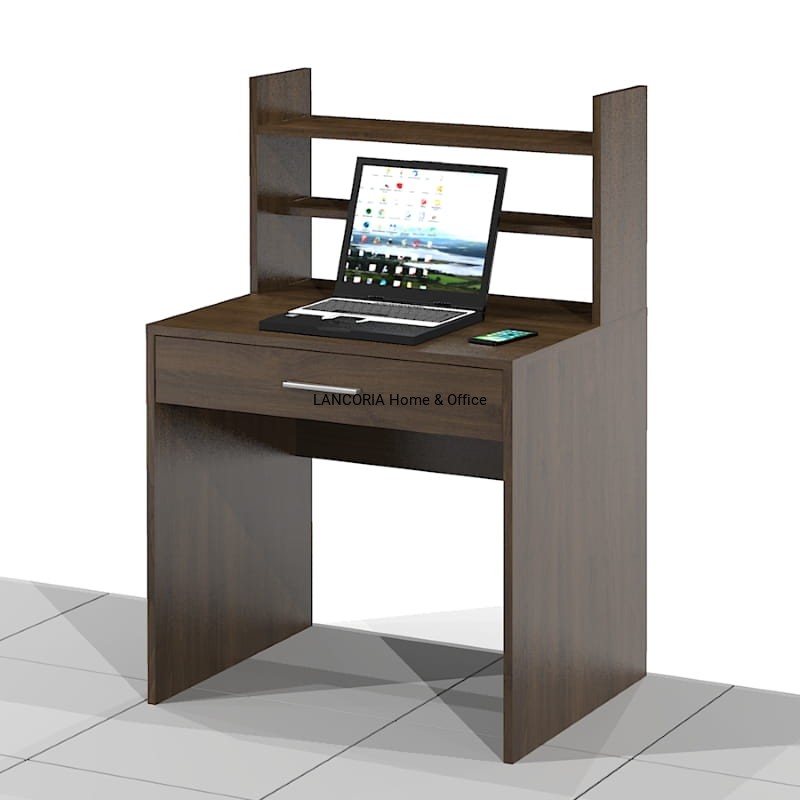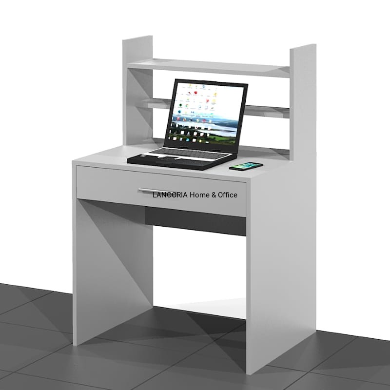 Na blacie nadstawka z półkami. Dostarczane zmontowane w całości.
