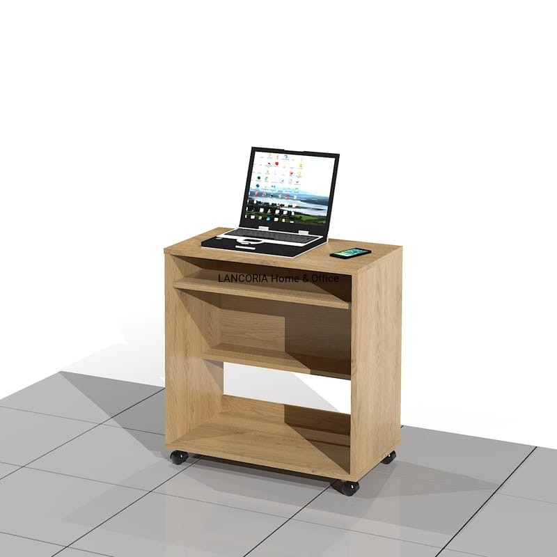 Biurko komputerowe stolik o prostej ale solidnej i mocnej konstrukcji. Wersja mobilna na kółkach. Dostarczane zmontowane w całości.
