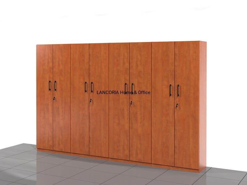 Elegancka duża szafa biurowa o solidnej i mocnej konstrukcji. Wysoka na pięć poziomów na segregatory. Dostępna w wielu kolorach i różnych wymiarach. Drzwi szafy zamykane są na klucz. Każdy zamek ma w komplecie dwa klucze. Pion środkowy wzmacniający konstrukcję, zabezpieczający uginaniu się półek. Wysokość półek w szafie przewidziana jest na segregatory ale można w niej przechowywać inne dokumenty i materiały biurowe.