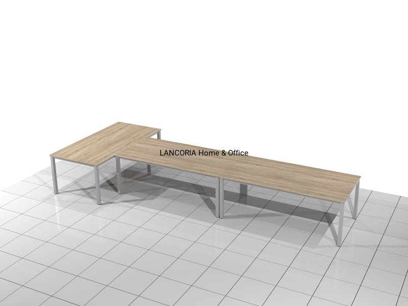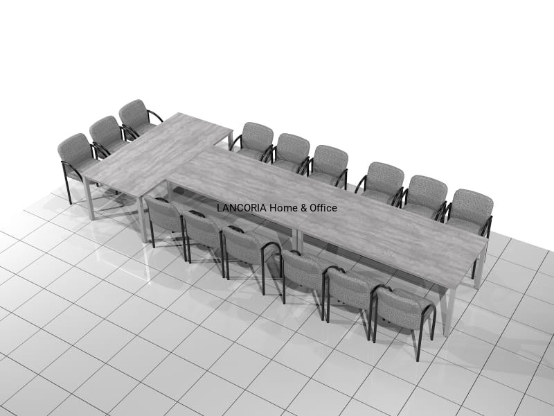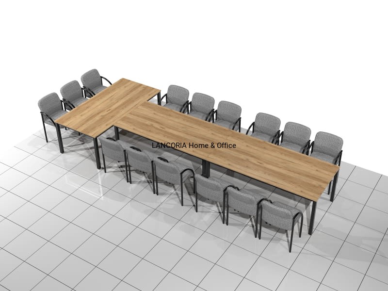 Zestaw trzech stołów konferencyjnych o solidnej i mocnej konstrukcji. Przeznaczony dla 15 osób. Stoły konferencyjne MAT-ZT posiadają blat z płyty laminowanej osadzony na solidnej metalowej ramie z kwadratowymi nogami 50 x 50 mm. Grubość blatu wynosi 18 mm. Za dopłatą blaty można pogrubić do 36 mm.
